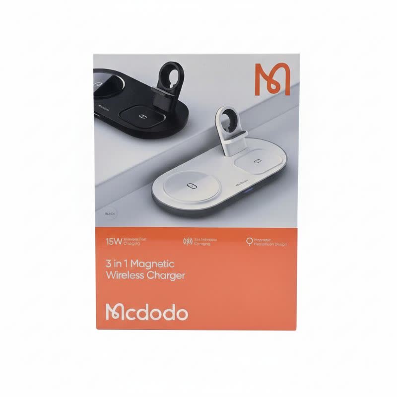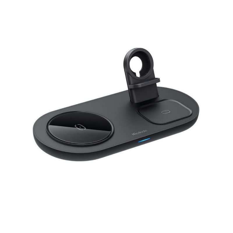 داک شارژر بی سیم مکدودو مدل CH-706 یک راهحل مهندسی شده برای پایان دادن به آشفتگی کابلهای شارژ روی میز کار یا پاتختی شماست. مکدودو (Mcdodo) با معرفی این محصول ۳ کاره، فضایی اختصاصی و ایمن برای تمام گجتهای اکوسیستم اپل و اندروید فراهم کرده است. اگر به دنبال خرید شارژر وایرلس ۳ کاره مکدودو هستید، در واقع محصولی را انتخاب کردهاید که نهتنها یک شارژر، بلکه یک استند زیبا و دکوراتیو برای تجهیزات دیجیتال شماست.