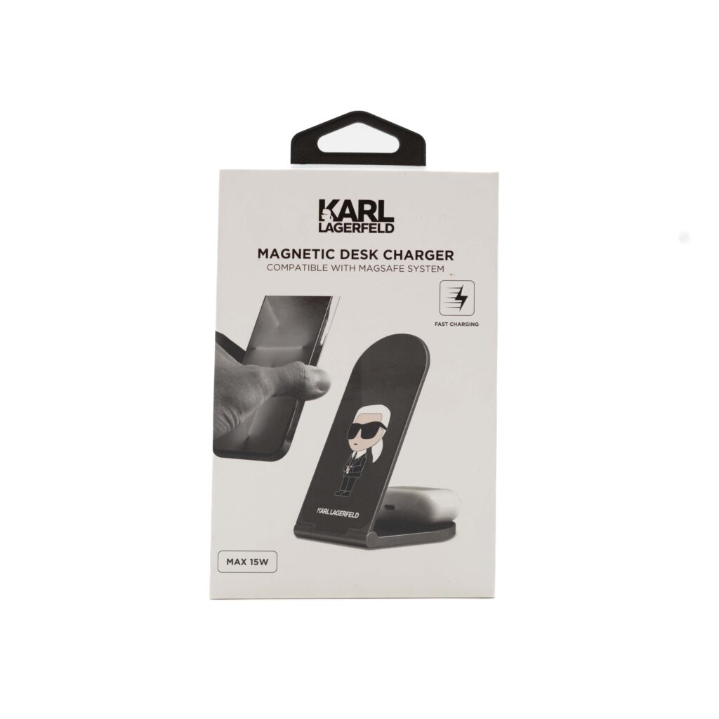 شارژر بی سیم کارل لاگرفلد مدل MAGNETIC DESK CHARGER ترکیبی بینظیر از طراحی مد روز و فناوری شارژ سریع است که میز کار یا کنار تخت شما را متحول میسازد. این شارژر رومیزی نه تنها یک ابزار کاربردی است، بلکه یک اکسسوری لوکس است که امضای مینیمالیستی و شیک کارل لاگرفلد را با خود به همراه دارد. اگر به دنبال خرید شارژر وایرلس کارل لاگرفلد MAGNETIC DESK هستید، در واقع یک راهحل شارژ شیک و دائمی برای گوشیهای سازگار خود (به ویژه مدلهای آیفون با MagSafe) انتخاب کردهاید.