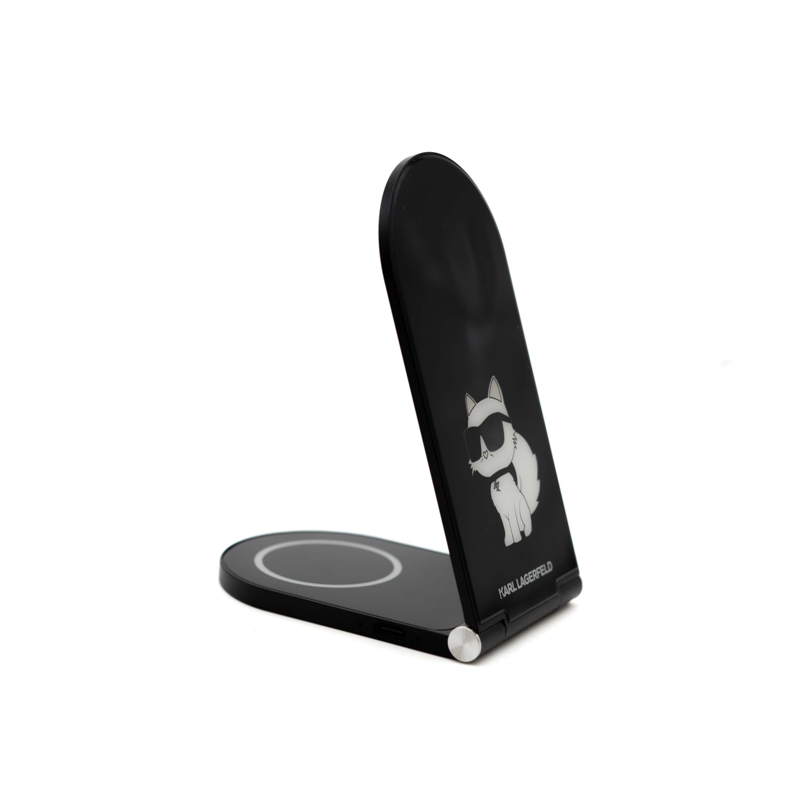 جذابیت اصلی این دستگاه در طراحی رومیزی پایدار و لوکس آن است. این پایه شارژر با ساختار مستحکم و پوشش باکیفیت، گوشی شما را در ارتفاع و زاویهای مناسب نگه میدارد. این قابلیت به شما امکان میدهد در حین شارژ، به راحتی تماسها و نوتیفیکیشنها را مشاهده کرده یا به تماشای ویدئو بپردازید، بدون آنکه نیاز به برداشتن گوشی باشد. همچنین، لوگوی برجسته کارل لاگرفلد روی بدنه، حس خاص بودن و اصالت برند را تقویت میکند.