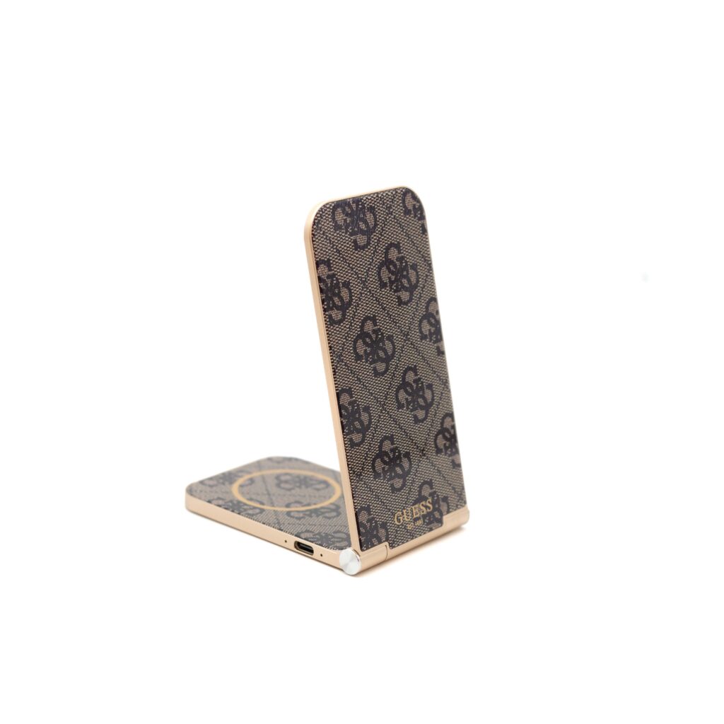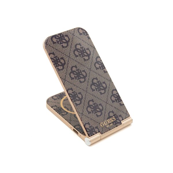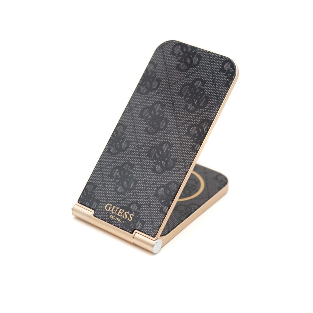 جذابیت اصلی این شارژر، طراحی شیک و برندینگ برجسته آن است. این پایه شارژر با ساختار مستحکم و پوشش باکیفیت، اغلب با لوگوی معروف گس (Guess) یا پترنهای خاص آن مزین شده که بلافاصله اصالت و فشن بودن برند را نشان میدهد. این استند، گوشی شما را در یک زاویه دید ایدهآل نگه میدارد. این قابلیت به شما اجازه میدهد در حین شارژ، بدون نیاز به نگه داشتن گوشی، به آسانی تماسهای ویدیویی، نوتیفیکیشنها یا محتوای بصری را دنبال کنید.