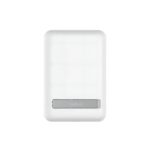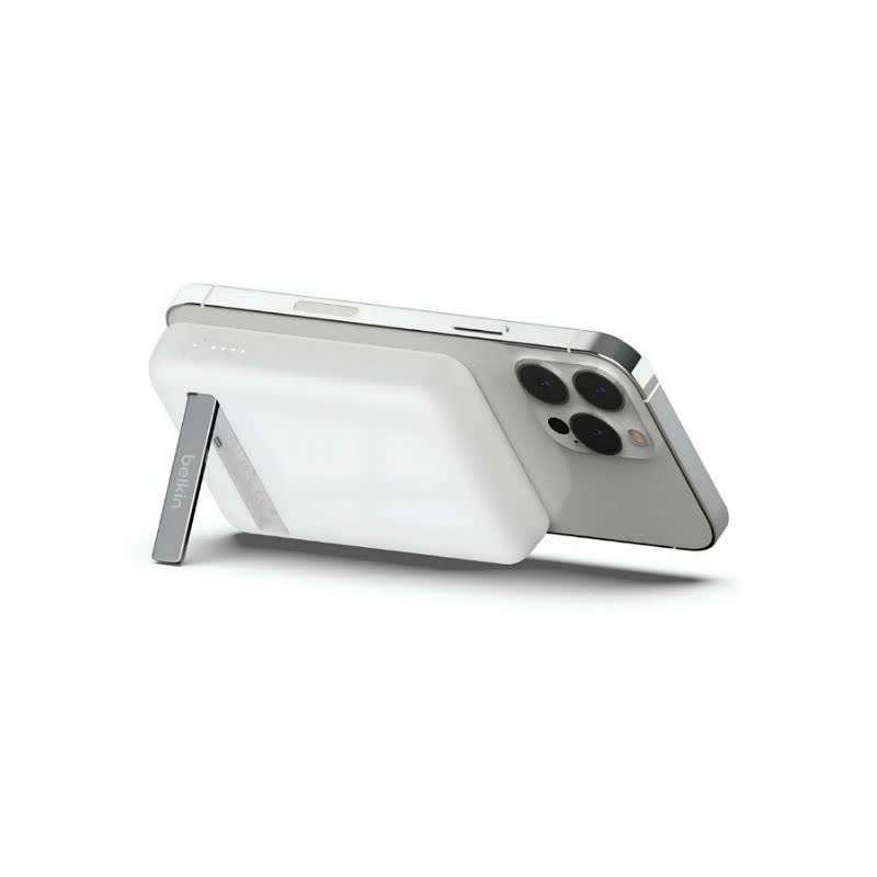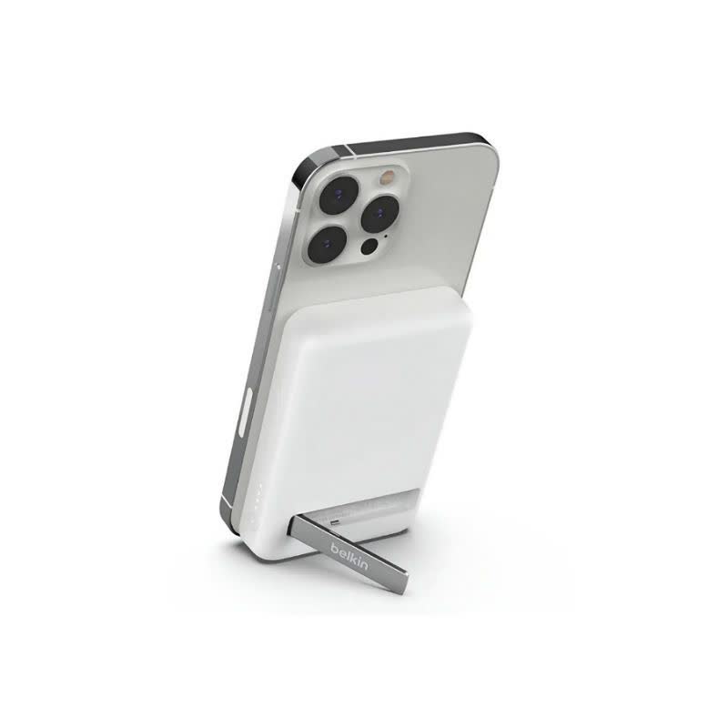 مهمترین ویژگی پاوربانک Belkin BPD004btBK، وجود استند تاشو و مخفی در پشت بدنه است. این پایه به شما اجازه میدهد تا در حین شارژ شدن گوشی به صورت بیسیم، آن را روی میز قرار داده و به تماشای ویدیو یا تماس تصویری بپردازید. آهنرباهای بهکار رفته در این مدل قدرت چسبندگی بسیار بالایی دارند و به محض قرارگیری در پشت گوشی، با ترازی دقیق فرآیند شارژ را آغاز میکنند تا هدررفت انرژی به کمترین میزان برسد. برخلاف مدلهای ارزانقیمت، این شارژر همراه مگنتی بلکین اصلی به هیچ وجه مانع عملکرد دوربین گوشی نمیشود.